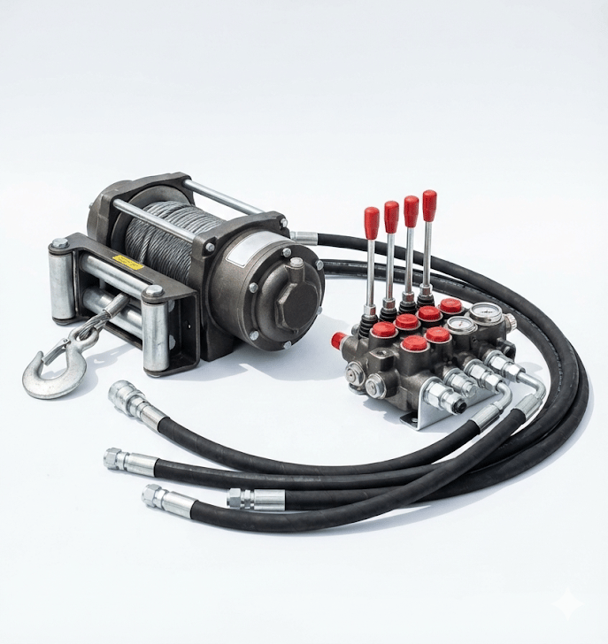Heavy-duty multi-spool control valves and hydraulic winches (up to 4 tons) for professional vehicle recovery systems